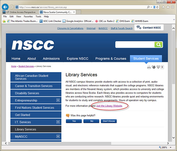 For example, from the NSCC website link to the NSCC Library Services website.