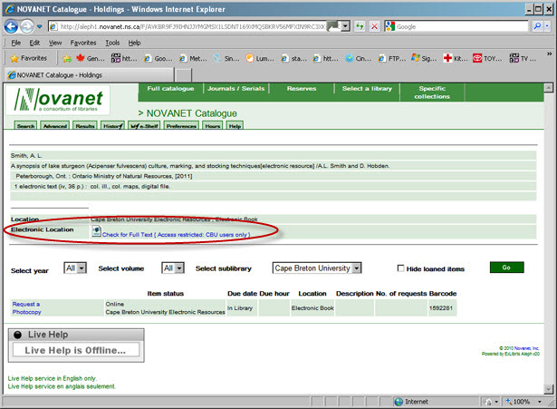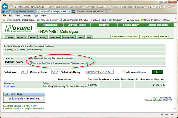 For electronic journals, the catalogue will contain the bibliographical record as well as a link to the content of the journal.