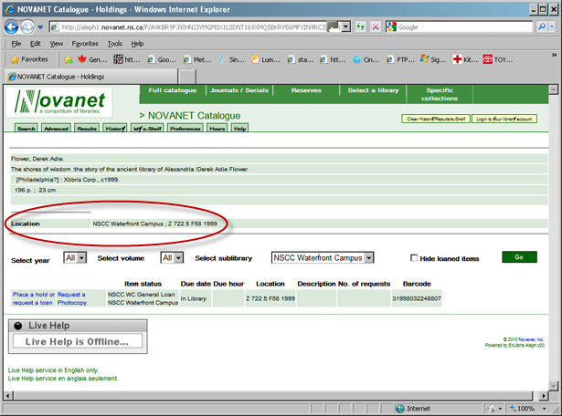 - physical location of the printed book.